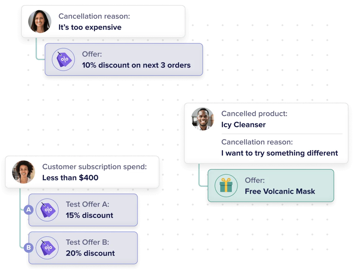 Use customer data to offer incentives tailored to their preferences, habits, and cancellation reasons. Then A/B test offers and landing pages to find the ones that drive results.