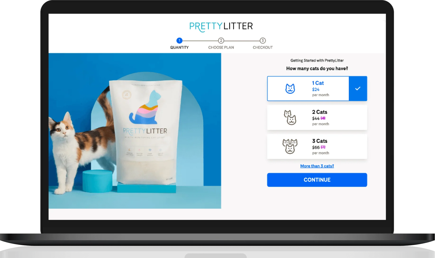 PrettyLitter avoids uncertainty by asking new customers how many cats they're providing for, not how much product they need.