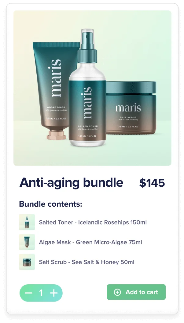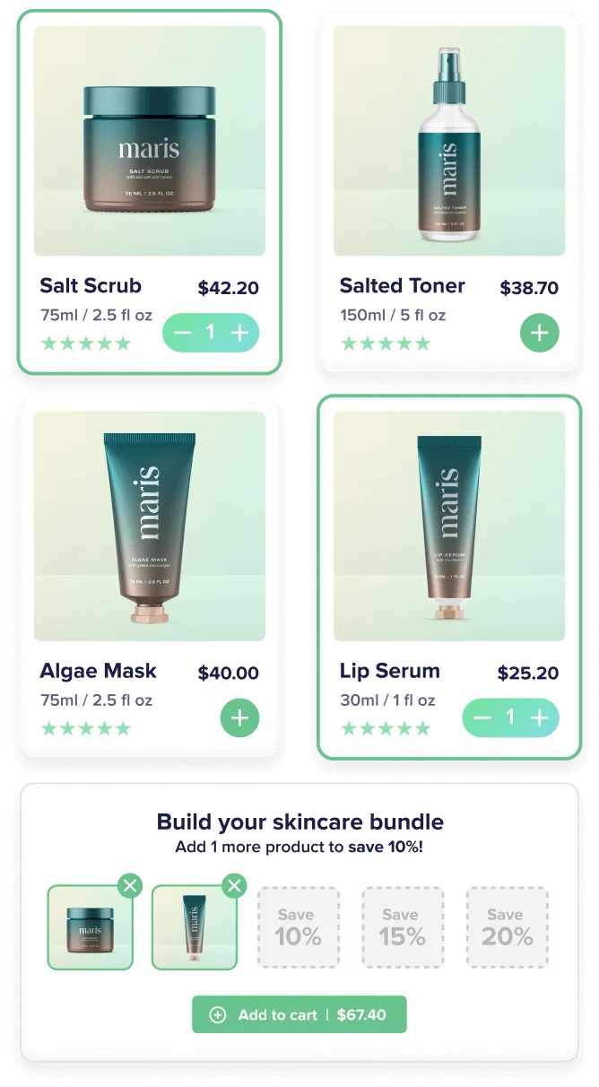 Bundle your best products together with custom or preset templates—there’s a bundle for every brand.