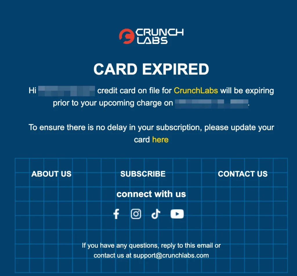 - Preemptive notifications: Send notifications to customers before their payment method is set to expire. Reminders can be sent via email, SMS, or in-app notifications, prompting customers to update their payment information in advance.