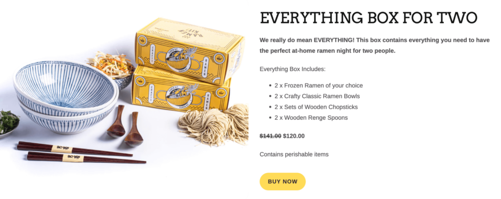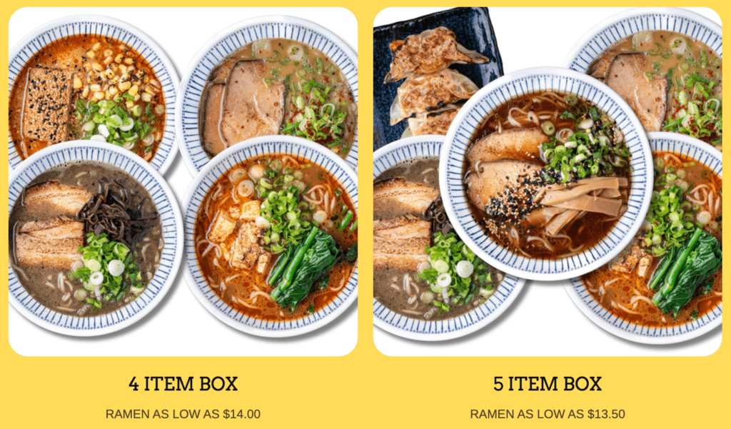 Crafty Ramen does this well with their Crafty Box option, a mix-and-match bundle where customers can customize how many items they receive and save money at the same time.