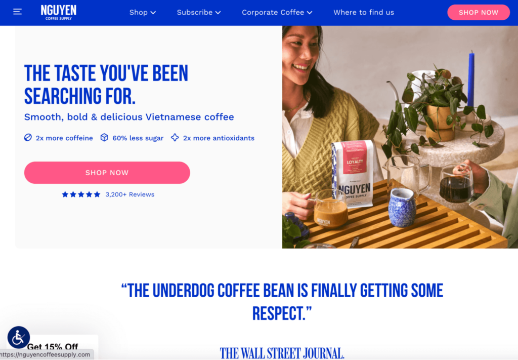 The takeaway? Make the product and its value proposition easily accessible to your target market. Customers know when they buy from Nguyen Coffee Supply, they’re also supporting founder Sahra Nguyen’s mission of destigmatizing the use of robusta beans and increasing diversity in the coffee industry by elevating her home roots in Vietnam. Today’s consumers care a lot more about where they buy from and the consequences of supporting one brand over another.