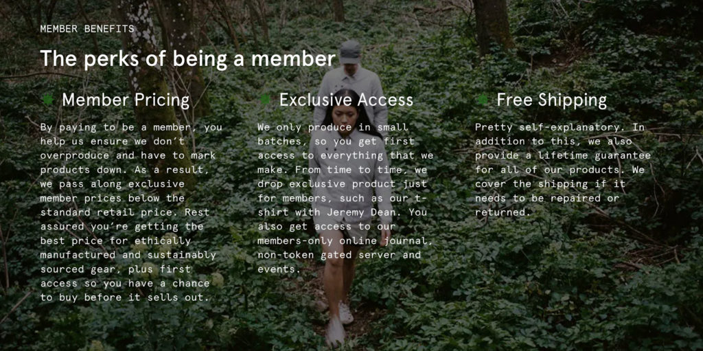 For instance, Early Majority clearly articulates their community’s mission to reduce waste, thereby empowering customers to contribute to a greater cause. They activate their community through a membership program that gives them member pricing, exclusive access, free shipping, and more.