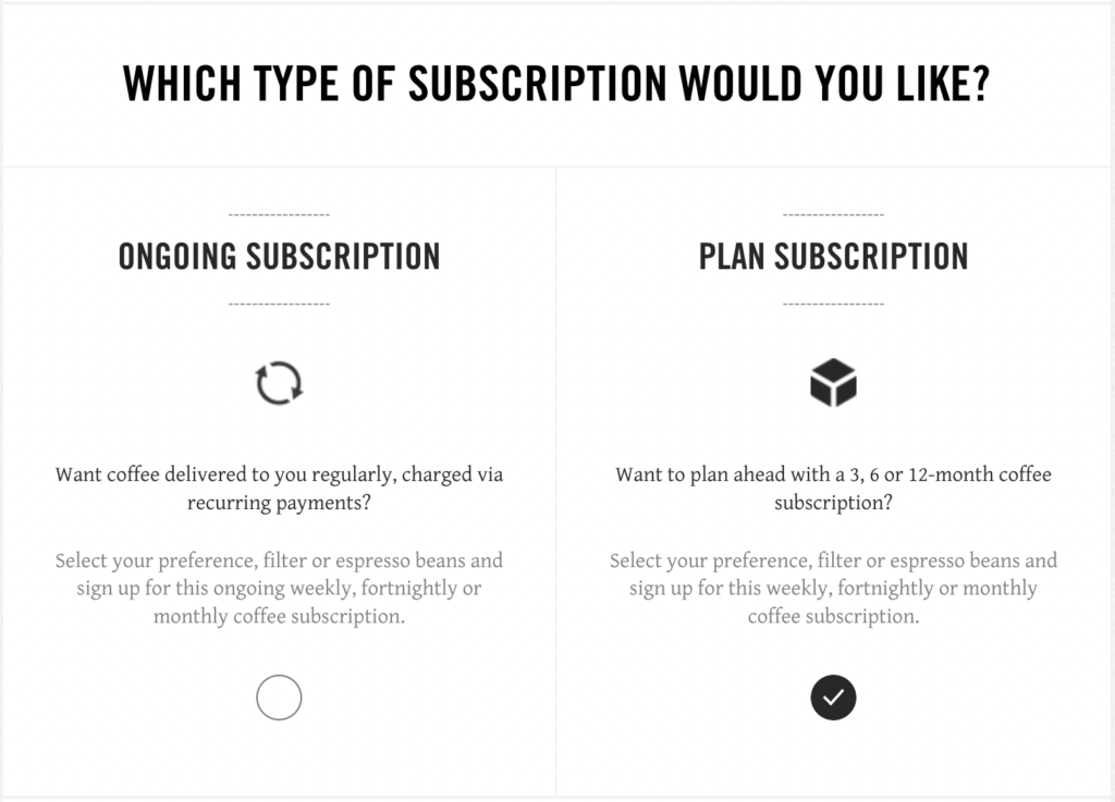 Bundles can be offered either as subscription offerings, one-time purchases, or both. Some coffee subscription services may even choose to offer a combination of the two.