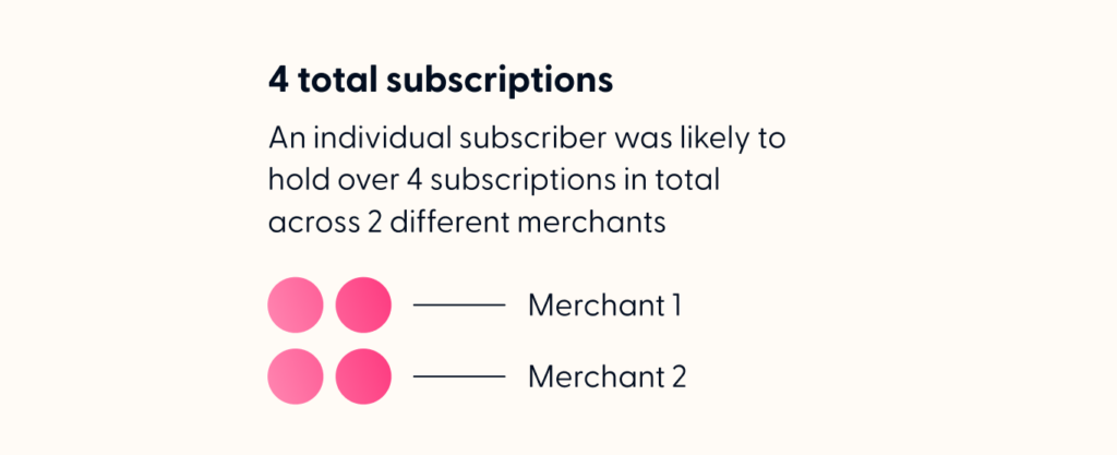 Within that 32.4%, the percentage of subscribers who held subscriptions with multiple merchants increased to 36.1%, compared to 31.3% in the previous year.