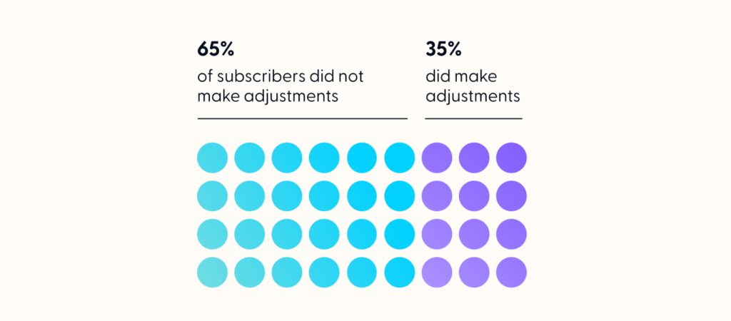 First, we looked at the percentage of customers who made adjustments to their orders in 2022. We found that over one-third (35%) edited their subscription in some way, be it skipping, swapping, or updating the frequency of an order.