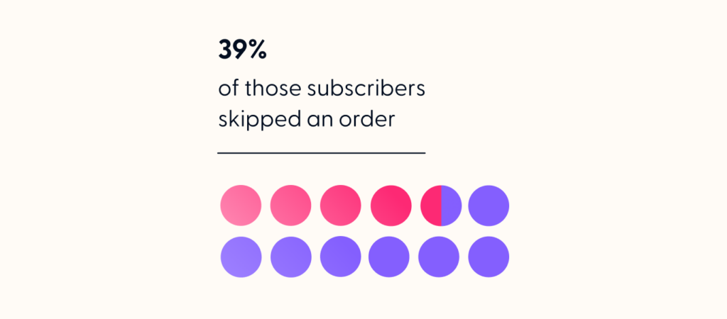 Within that 35% of customers who edited their orders, we saw a significant increase in the percentage of subscribers skipping an order. While in 2021, 32% of customers skipped an order, in 2022, this increased to 39%.