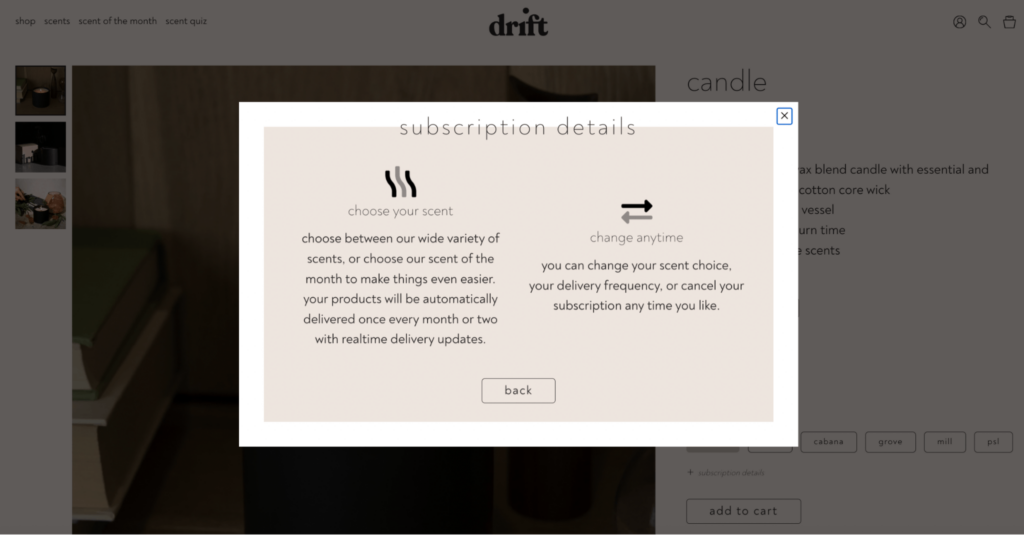 - Create a custom modal to reinforce the value of subscriptions. Your modal could highlight subscription perks (e.g. free or priority shipping), flexible cancellation policies, or other unique benefits of your offerings.