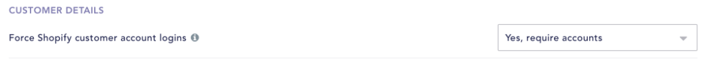 If you enable this feature, it is very important to verify that customer accounts in Shopify are set to optional or required before enabling. This is to ensure that customers aren’t sent through an endless loop of being prompted to log in without the ability to create an account.