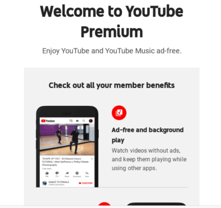 For example, here, YouTube greets a new YouTube Premium customer to greet them with this welcome email and includes a description of the benefits they will enjoy as part of their membership: